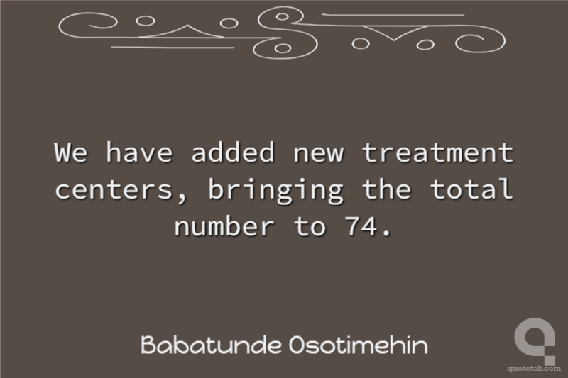 We have added new treatment centers, bringing the total number to 74.