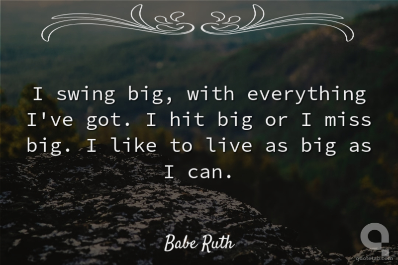 I swing big, with everything I've got. I hit big or I miss big. I like to live as big as I can.