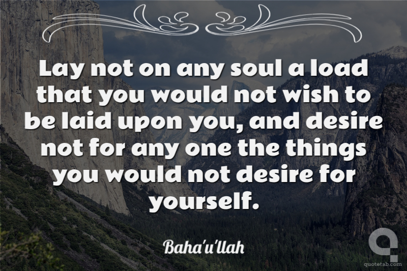 Lay not on any soul a load that you would not wish to be laid upon you, and desire not for any one the things you would not desire for yourself.