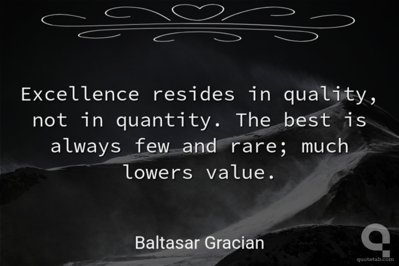 Excellence resides in quality, not in quantity. The best is always few and rare; much lowers value.