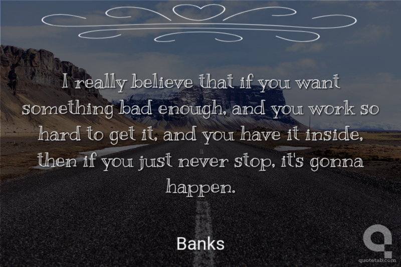 I really believe that if you want something bad enough, and you work so hard to get it, and you have it inside, then if you just never stop, it's gonna happen.