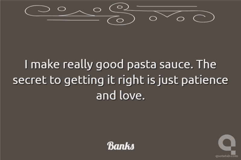 I make really good pasta sauce. The secret to getting it right is just patience and love.