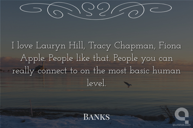 I love Lauryn Hill, Tracy Chapman, Fiona Apple. People like that. People you can really connect to on the most basic human level.