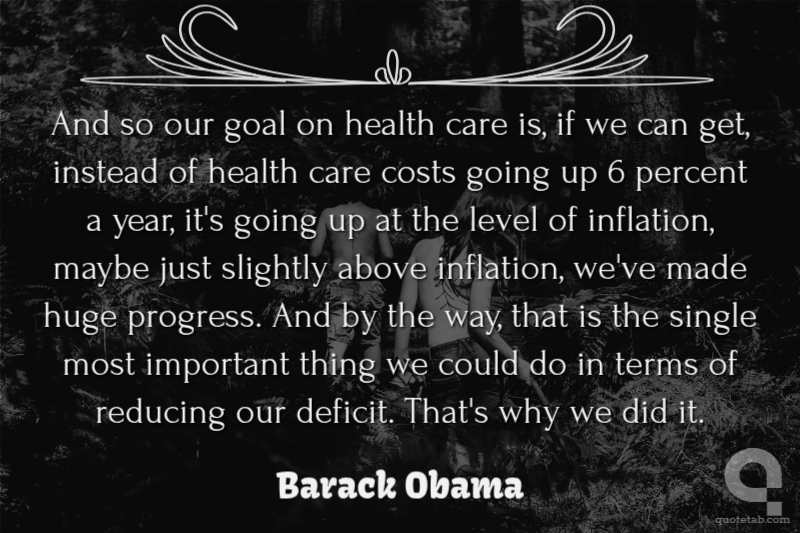 And so our goal on health care is, if we can get, instead of health care costs going up 6 percent a year, it's going up at the level of inflation, maybe just slightly above inflation, we've made huge progress. And by the way, that is the single most important thing we could do in terms of reducing our deficit. That's why we did it.