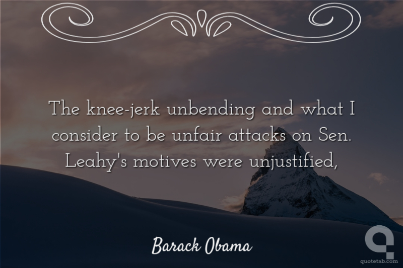 The knee-jerk unbending and what I consider to be unfair attacks on Sen. Leahy's motives were unjustified,