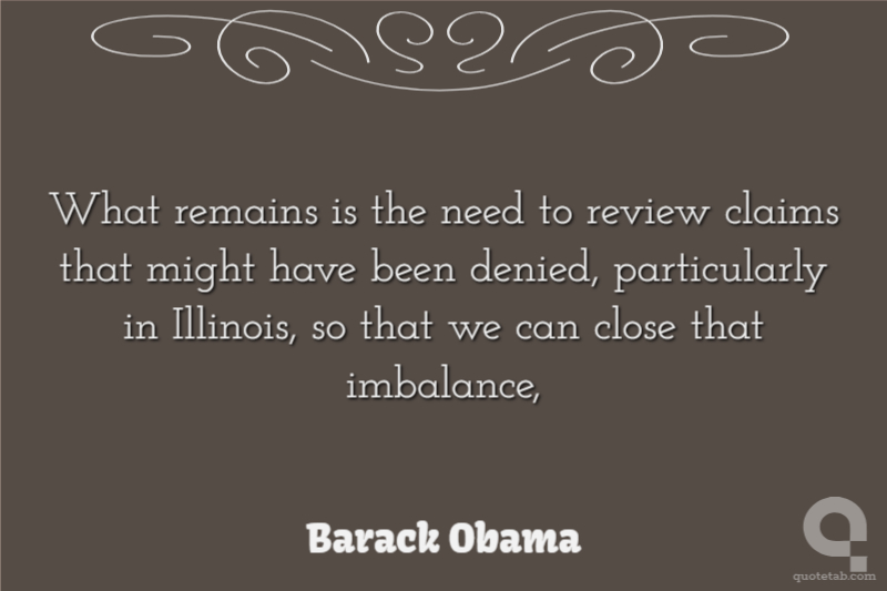 What remains is the need to review claims that might have been denied, particularly in Illinois, so that we can close that imbalance,
