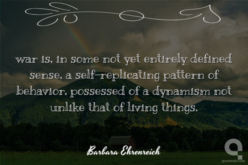 war is, in some not yet entirely defined sense, a self-replicating pattern of behavior, possessed of a dynamism not unlike that of living things.