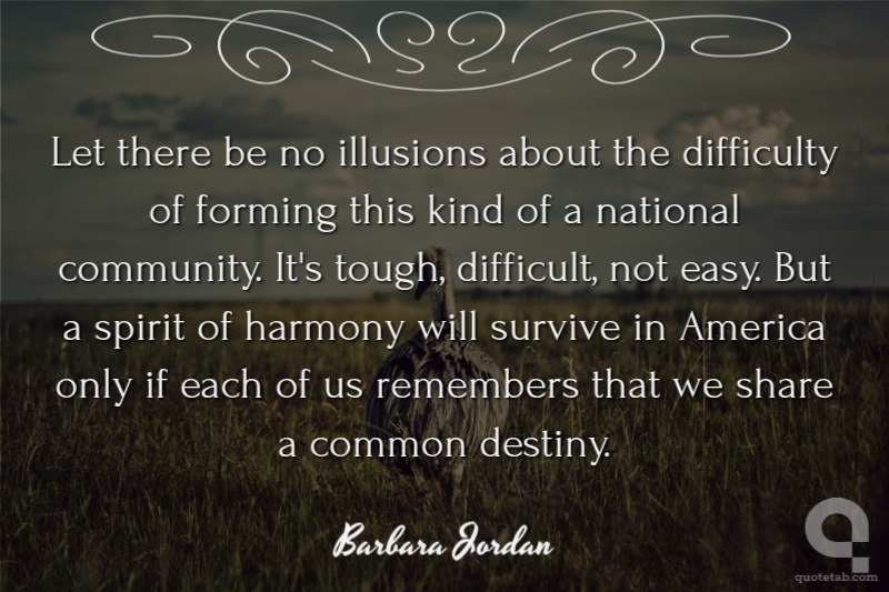Let there be no illusions about the difficulty of forming this kind of a national community. It's tough, difficult, not easy. But a spirit of harmony will survive in America only if each of us remembers that we share a common destiny.