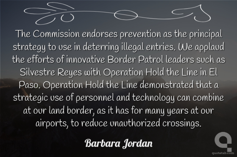 The Commission endorses prevention as the principal strategy to use in deterring illegal entries. We applaud the efforts of innovative Border Patrol leaders such as Silvestre Reyes with Operation Hold the Line in El Paso. Operation Hold the Line demonstrated that a strategic use of personnel and technology can combine at our land border, as it has for many years at our airports, to reduce unauthorized crossings.