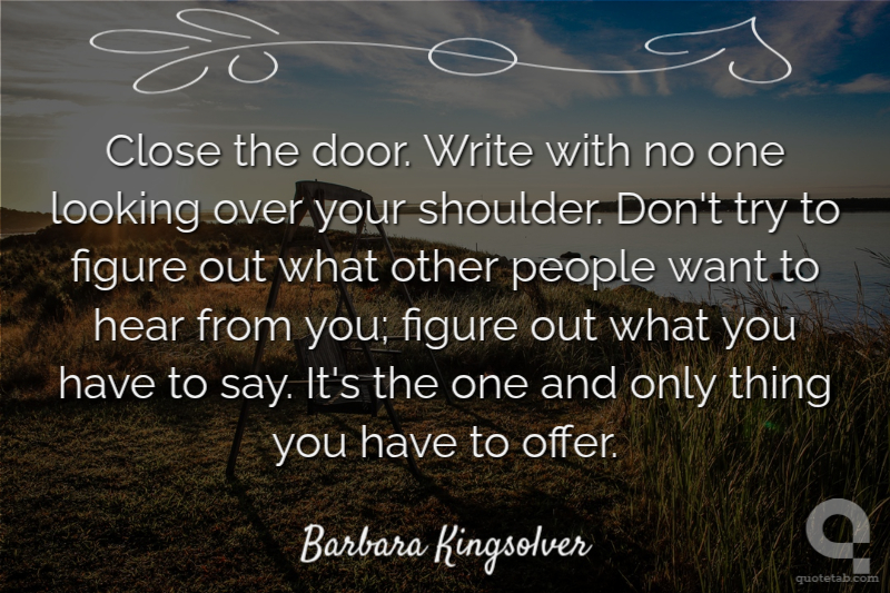 Close the door. Write with no one looking over your shoulder. Don't try to figure out what other people want to hear from you; figure out what you have to say. It's the one and only thing you have to offer.