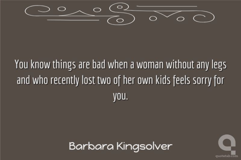 You know things are bad when a woman without any legs and who recently lost two of her own kids feels sorry for you.