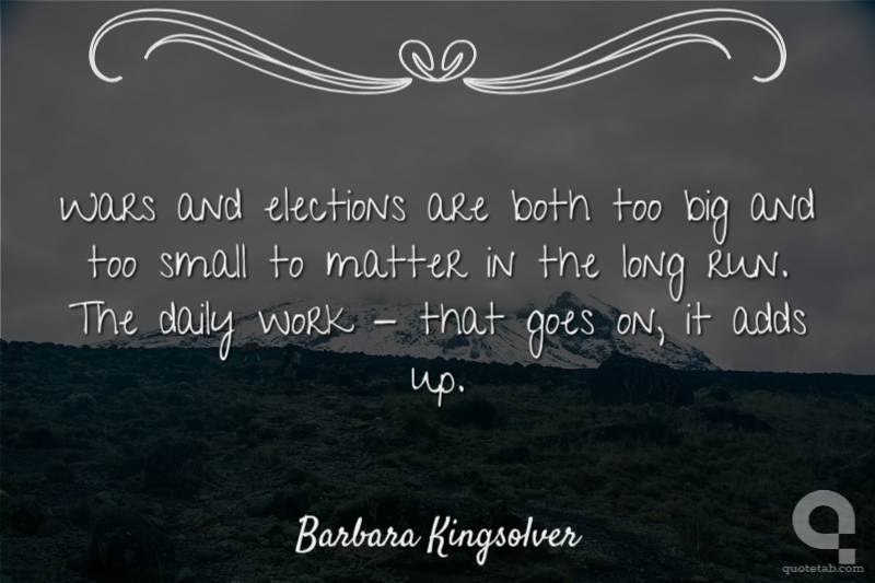 Wars and elections are both too big and too small to matter in the long run. The daily work - that goes on, it adds up.