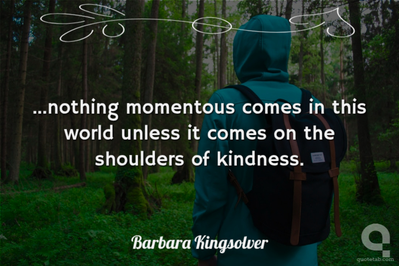 ...nothing momentous comes in this world unless it comes on the shoulders of kindness.