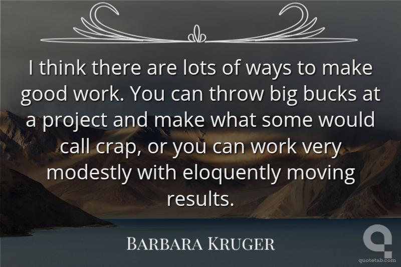 I think there are lots of ways to make good work. You can throw big bucks at a project and make what some would call crap, or you can work very modestly with eloquently moving results.