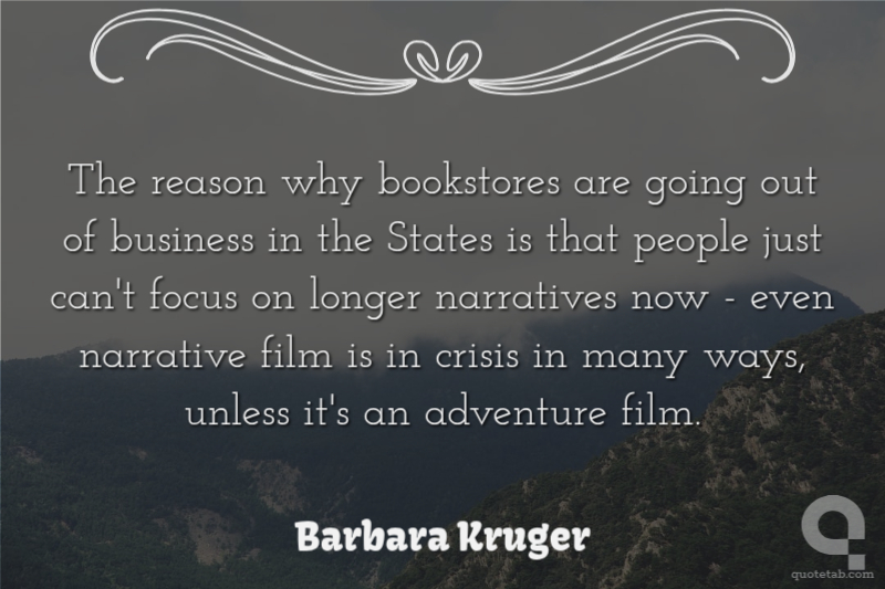 The reason why bookstores are going out of business in the States is that people just can't focus on longer narratives now - even narrative film is in crisis in many ways, unless it's an adventure film.