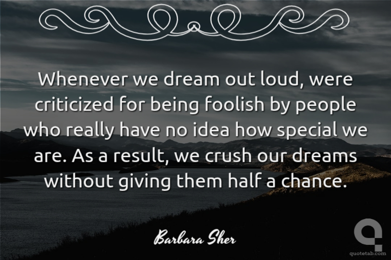 Whenever we dream out loud, were criticized for being foolish by people who really have no idea how special we are. As a result, we crush our dreams without giving them half a chance.