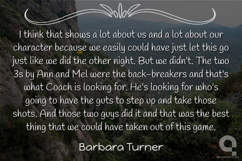 I think that shows a lot about us and a lot about our character because we easily could have just let this go just like we did the other night. But we didn't. The two 3s by Ann and Mel were the back-breakers and that's what Coach is looking for. He's looking for who's going to have the guts to step up and take those shots. And those two guys did it and that was the best thing that we could have taken out of this game.