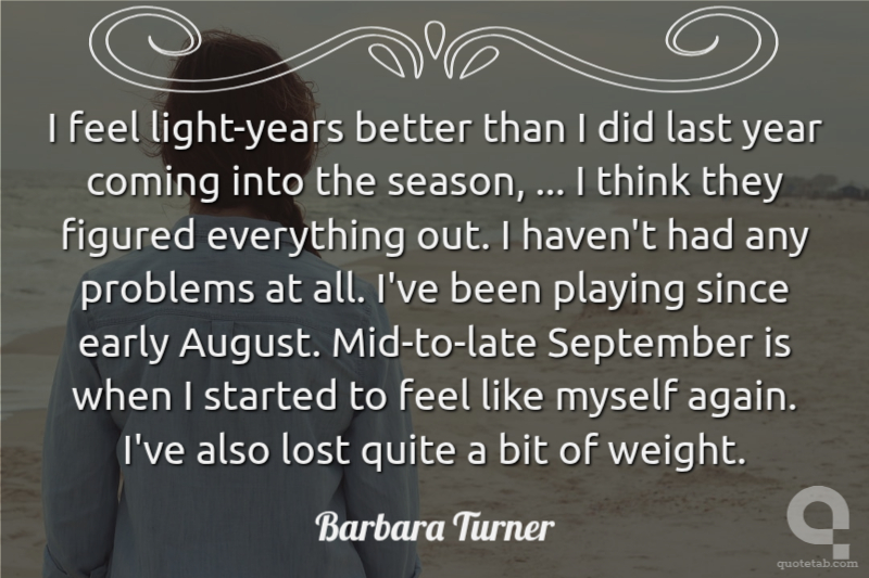 I feel light-years better than I did last year coming into the season, ... I think they figured everything out. I haven't had any problems at all. I've been playing since early August. Mid-to-late September is when I started to feel like myself again. I've also lost quite a bit of weight.
