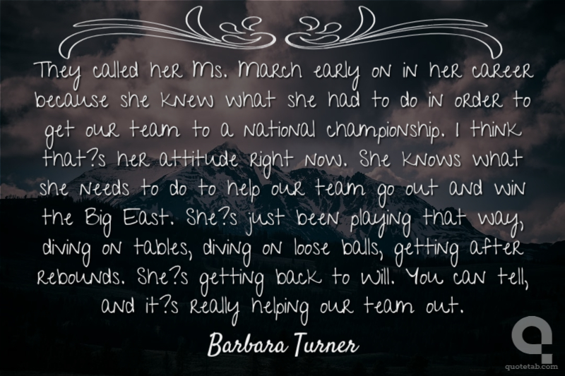They called her Ms. March early on in her career because she knew what she had to do in order to get our team to a national championship. I think that?s her attitude right now. She knows what she needs to do to help our team go out and win the Big East. She?s just been playing that way, diving on tables, diving on loose balls, getting after rebounds. She?s getting back to Will. You can tell, and it?s really helping our team out.