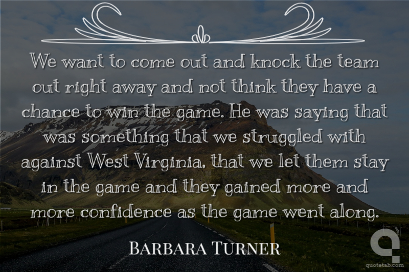 We want to come out and knock the team out right away and not think they have a chance to win the game. He was saying that was something that we struggled with against West Virginia, that we let them stay in the game and they gained more and more confidence as the game went along.