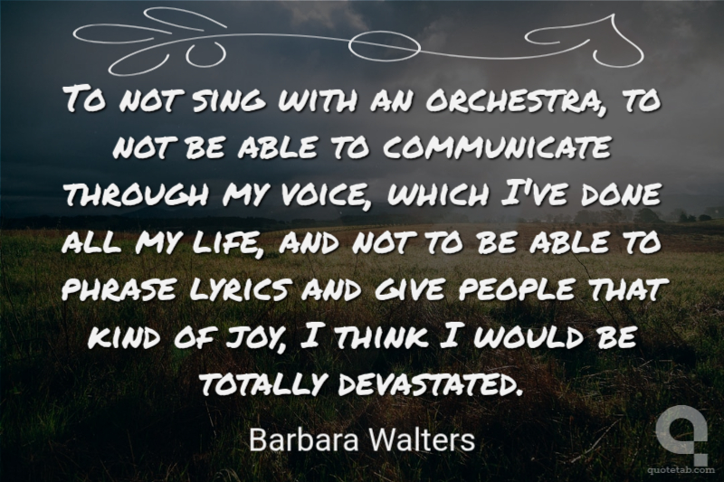 To not sing with an orchestra, to not be able to communicate through my voice, which I've done all my life, and not to be able to phrase lyrics and give people that kind of joy, I think I would be totally devastated.