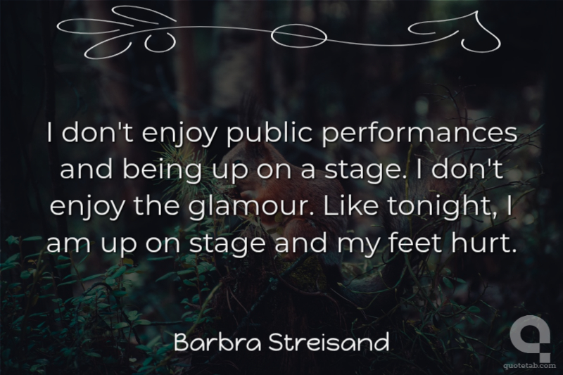 I don't enjoy public performances and being up on a stage. I don't enjoy the glamour. Like tonight, I am up on stage and my feet hurt.