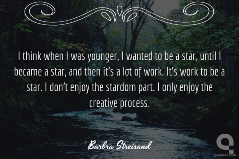 I think when I was younger, I wanted to be a star, until I became a star, and then it's a lot of work. It's work to be a star. I don't enjoy the stardom part. I only enjoy the creative process.