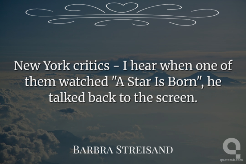 New York critics - I hear when one of them watched A Star Is Born, he talked back to the screen.