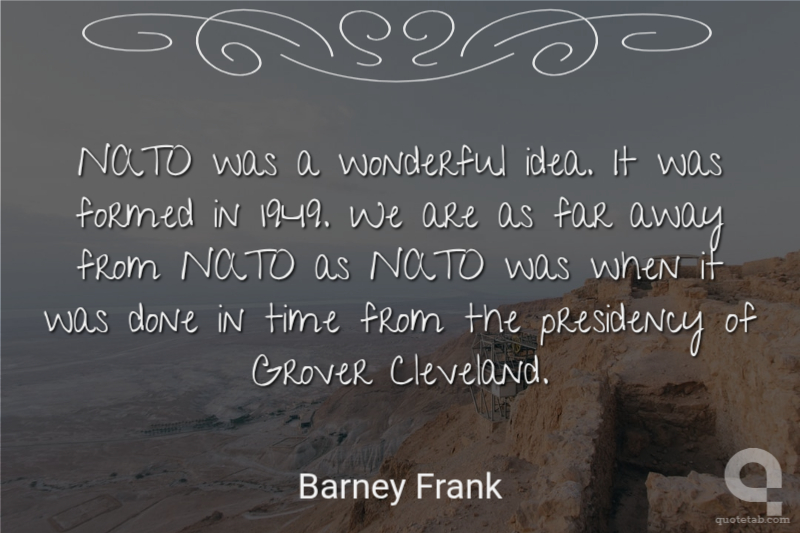 NATO was a wonderful idea. It was formed in 1949. We are as far away from NATO as NATO was when it was done in time from the presidency of Grover Cleveland.