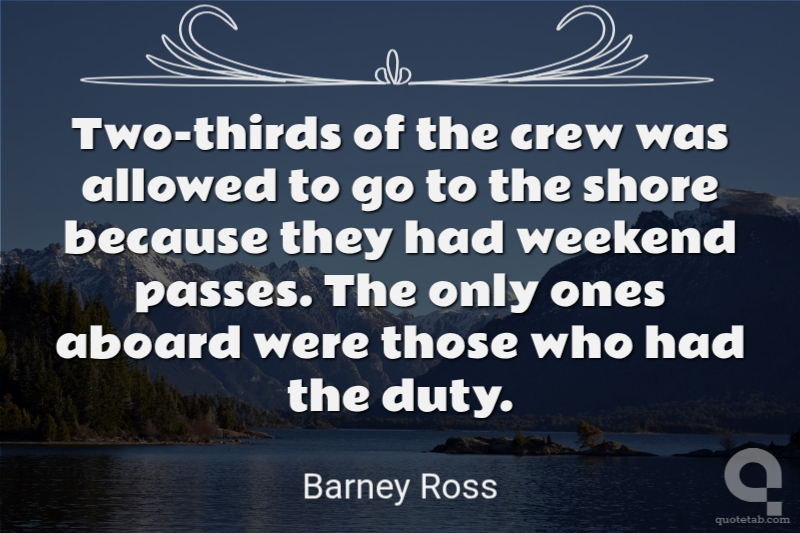 Two-thirds of the crew was allowed to go to the shore because they had weekend passes. The only ones aboard were those who had the duty.