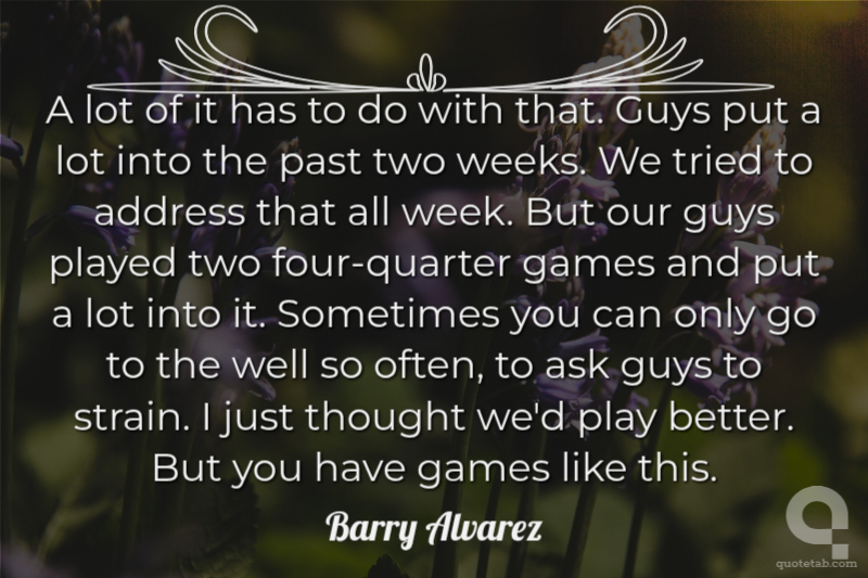 A lot of it has to do with that. Guys put a lot into the past two weeks. We tried to address that all week. But our guys played two four-quarter games and put a lot into it. Sometimes you can only go to the well so often, to ask guys to strain. I just thought we'd play better. But you have games like this.