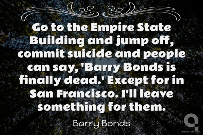 Go to the Empire State Building and jump off, commit suicide and people can say, 'Barry Bonds is finally dead.' Except for in San Francisco. I'll leave something for them.
