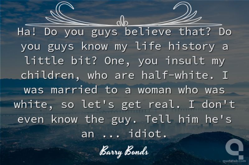 Ha! Do you guys believe that? Do you guys know my life history a little bit? One, you insult my children, who are half-white. I was married to a woman who was white, so let's get real. I don't even know the guy. Tell him he's an ... idiot.