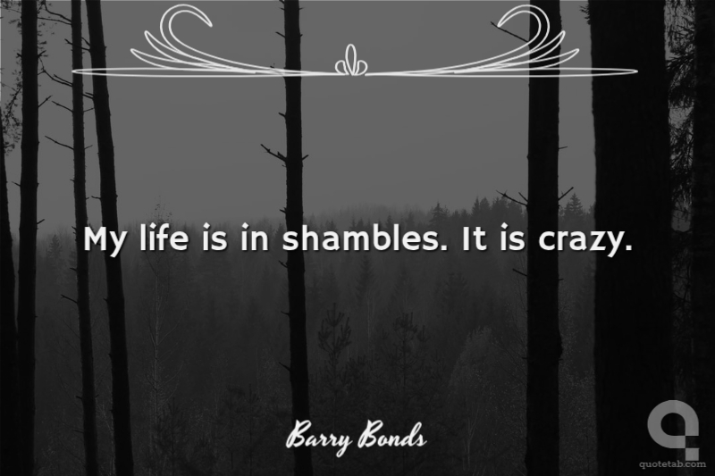 My life is in shambles. It is crazy. It couldn't get any crazier. I'm just trying to stay sane.