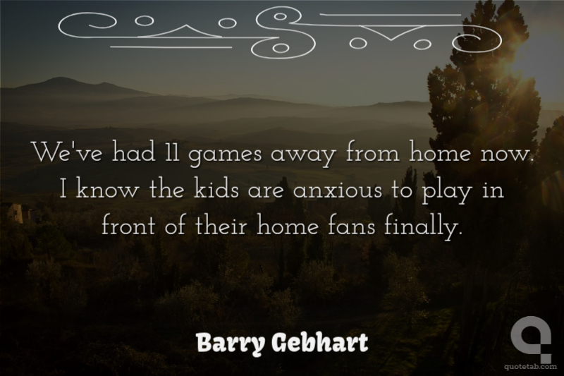 We've had 11 games away from home now. I know the kids are anxious to play in front of their home fans finally.