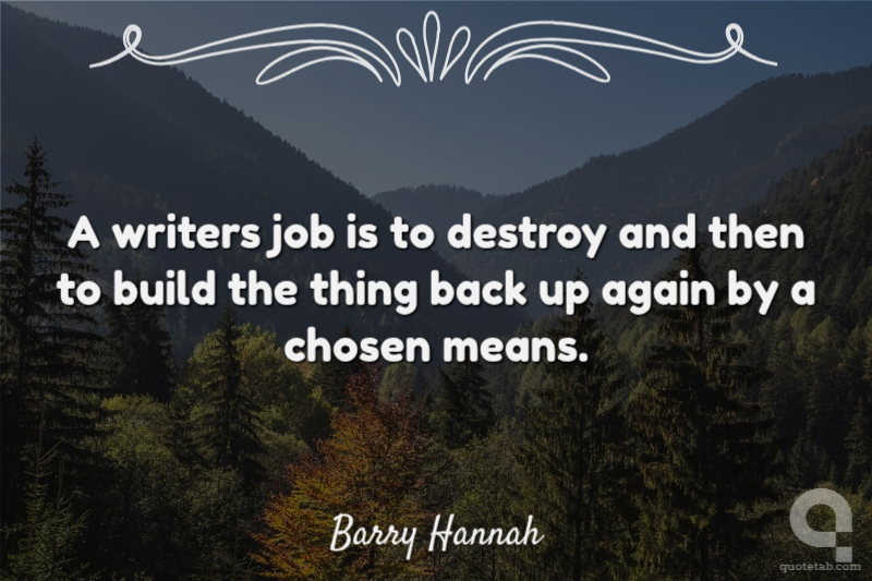 A writers job is to destroy and then to build the thing back up again by a chosen means.