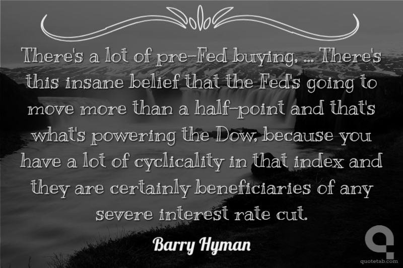There's a lot of pre-Fed buying, ... There's this insane belief that the Fed's going to move more than a half-point and that's what's powering the Dow, because you have a lot of cyclicality in that index and they are certainly beneficiaries of any severe interest rate cut.