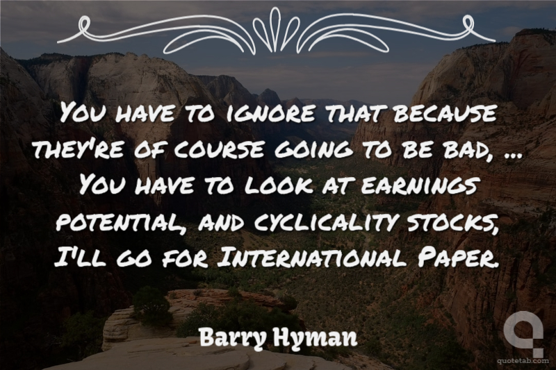 You have to ignore that because they're of course going to be bad, ... You have to look at earnings potential, and cyclicality stocks, I'll go for International Paper.