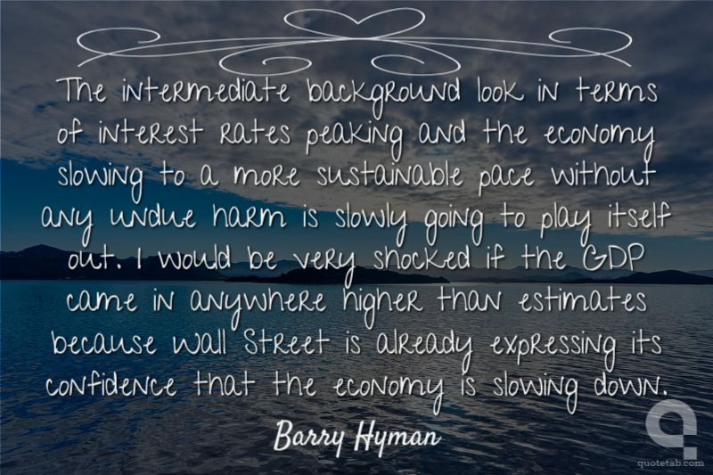 The intermediate background look in terms of interest rates peaking and the economy slowing to a more sustainable pace without any undue harm is slowly going to play itself out. I would be very shocked if the GDP came in anywhere higher than estimates because Wall Street is already expressing its confidence that the economy is slowing down.
