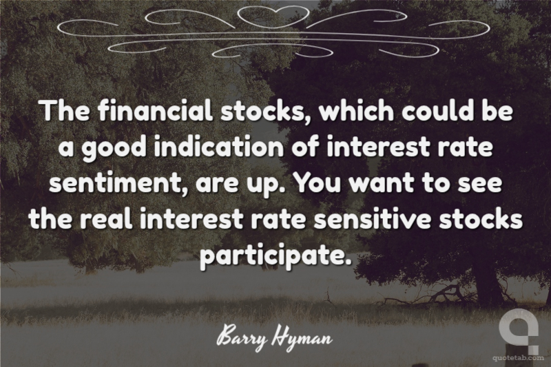 The financial stocks, which could be a good indication of interest rate sentiment, are up. You want to see the real interest rate sensitive stocks participate.