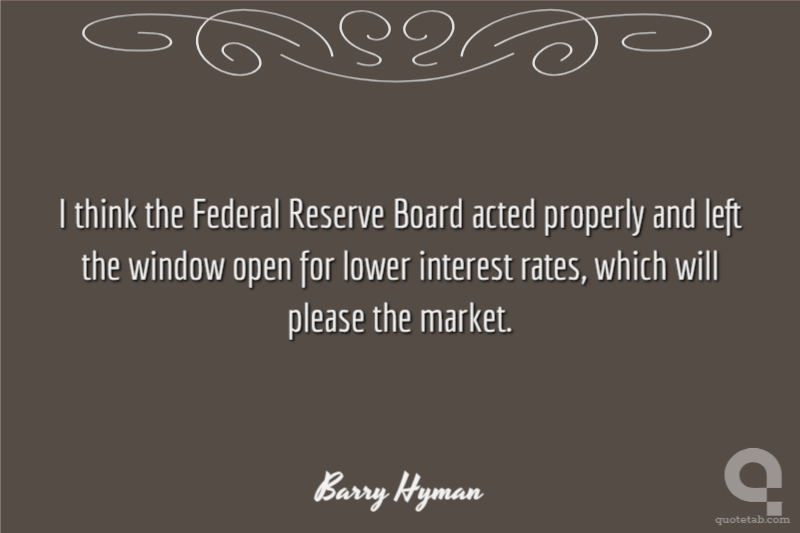 I think the Federal Reserve Board acted properly and left the window open for lower interest rates, which will please the market.