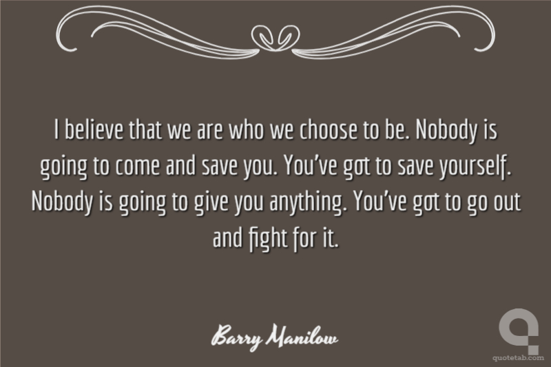 I believe that we are who we choose to be. Nobody is going to come and save you. You've got to save yourself. Nobody is going to give you anything. You've got to go out and fight for it.