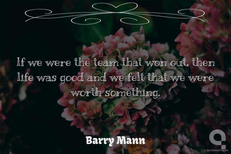 If we were the team that won out, then life was good and we felt that we were worth something.