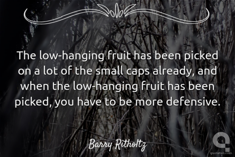 The low-hanging fruit has been picked on a lot of the small caps already, and when the low-hanging fruit has been picked, you have to be more defensive.