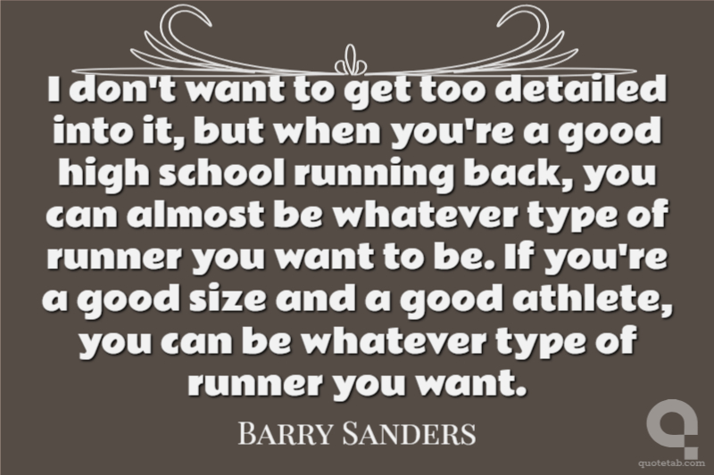 I don't want to get too detailed into it, but when you're a good high school running back, you can almost be whatever type of runner you want to be. If you're a good size and a good athlete, you can be whatever type of runner you want.