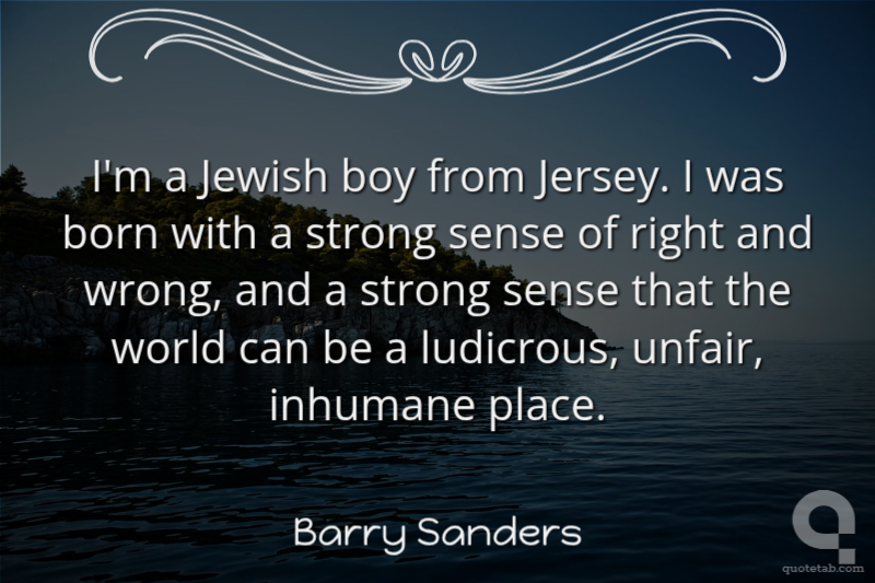 I'm a Jewish boy from Jersey. I was born with a strong sense of right and wrong, and a strong sense that the world can be a ludicrous, unfair, inhumane place.