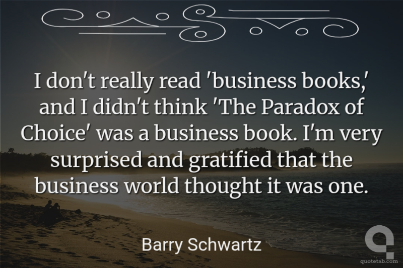 I don't really read 'business books,' and I didn't think 'The Paradox of Choice' was a business book. I'm very surprised and gratified that the business world thought it was one.