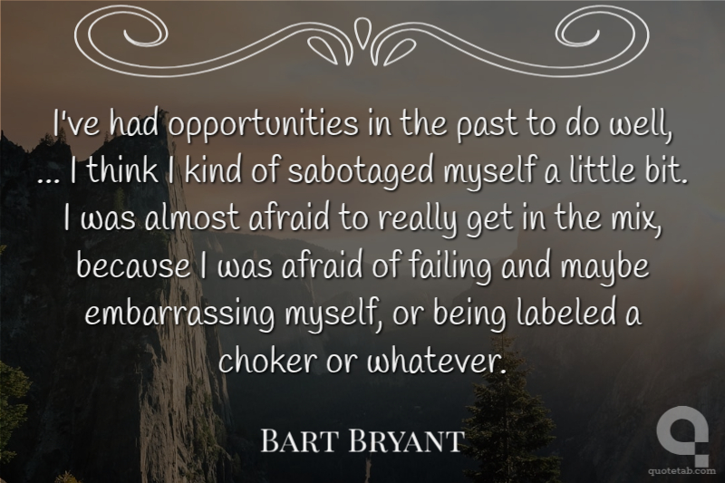 I've had opportunities in the past to do well, ... I think I kind of sabotaged myself a little bit. I was almost afraid to really get in the mix, because I was afraid of failing and maybe embarrassing myself, or being labeled a choker or whatever.
