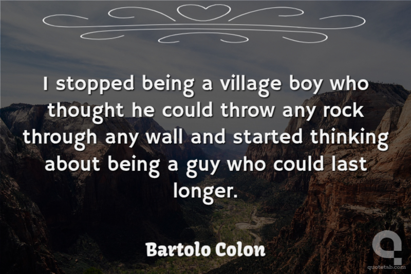 I stopped being a village boy who thought he could throw any rock through any wall and started thinking about being a guy who could last longer.