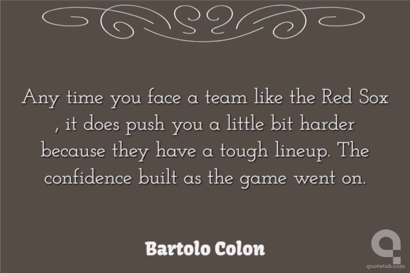 Any time you face a team like the Red Sox , it does push you a little bit harder because they have a tough lineup. The confidence built as the game went on.